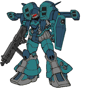 History: After the DOM Trooper debuted in Terminal's hands, ZAFT's leadership decided to revisit the idea of a high-speed heavy assault mobile suit. When Terminal stole the DOM data though, they also erased ZAFT's copies, so they use the ZAKU's frame as a base and loaded it with engines to the point where most of the Kaempher's power went towards propulsion and could only use beam weapons that had their own batteries. Thanks to a hasty development schedule, ZAFT managed to build two for testing before the war's end but they didn't see any action until after the war.