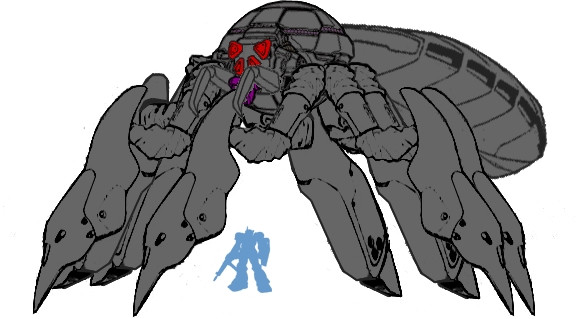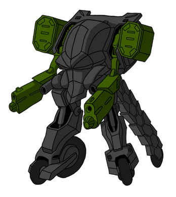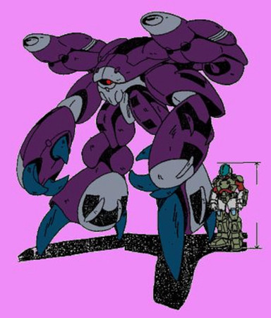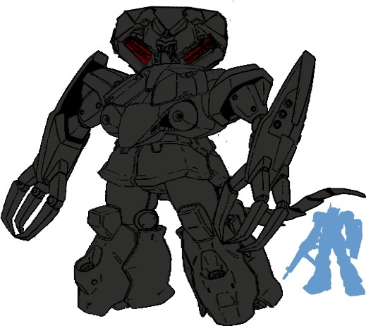 Actually, I think the hands are very good for the design. You see, they seem to add a sense of monstrousness, making this thing look like a mechanical homunculus. The head adds to the effect, making it look very ugly, and savagely dim. As for the lower torso, its smallness just adds to the general bulk'n'brawn-over-lean'n'speedy effect that makes this look like such a powerhouse. The shoulder cannon doesn't hurt, either.