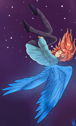 From the videogame Celeste, I got inspired by the song of the soundtrack Quiet and Falling.No, haven't played the game (yet) but is on my list of games to play soon.