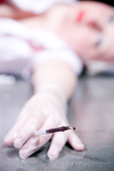 I wanted to do something unbloody, and the fact that I accidentally broke my injection made me think of something drug-related.