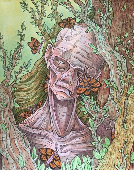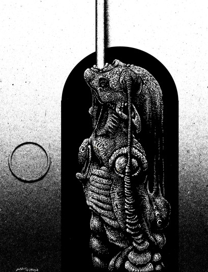 this looks scary and creepy and I really like the details, the pointlism is exelent,