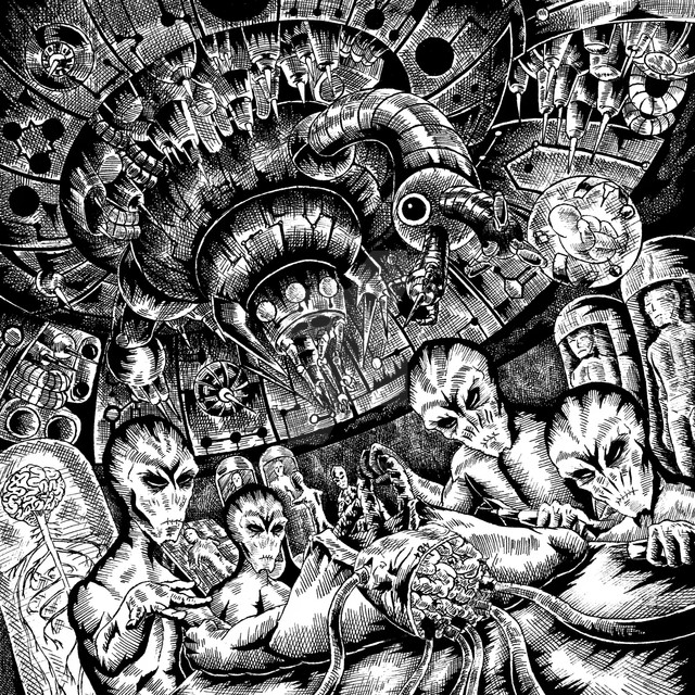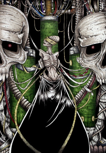 Awesome, this looks rather creepy, the alien that is going to put you to sleep it seems with the gas tube.. The pointilism and the shading is very well done! Great deail, I like it alot!