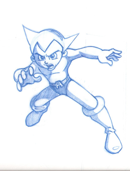 Yeah, she was joking saying that he looked too muscley. I drew more detail than is within the Astro Boy-style, and thus, did more musculature detail. But hey, that's how I roll. X3