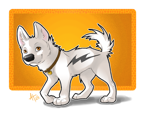 OMYGAWD YES, THAT IS BOLT. X3I'm actually very pleased with how this turned out, besides where I attempted detail on all the long fur and epically failed. :/ But it turned out actually looking like Bolt surprisingly. The only other time I tried to draw him, it was all, "BLEAGH!" I'm also impressed with the text. It looks like the title! W00T! XD