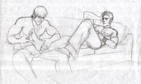 "Don't be afraid to really dig in there"This from a kinda real situation, but it was a shoulder rub. Basically, the story is, he was sitting down, we'll call him [G], I've actually drawn him before, I digress. G was sitting in the changing room, and I walked up behind and started giving him a shoulder rub, and he said, "[Drag], I hope you don't get a career in this because you're really not good at it." So, I tickled him, but he wasn't really that ticklish, so that didn't work........I don't think I ever got him for that....Anyway, I saw G a while ago and told him I'd improved, he said, "Much better", and I showed him......Is that sad......I feel so unaccomplished now having typed that out.....Oh well, I still love G.