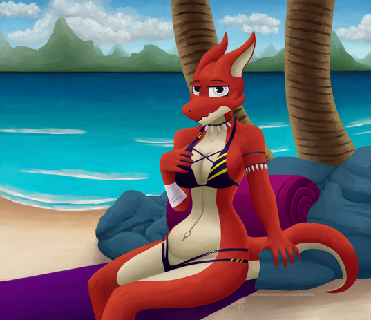 #anthro #ass #beach #bikini #boobs #butt #commission #digitalart #female #furry #furryart #hips #oc #raptor #scalie #sexy #sfw #water #heti #thick_thighs #thicc #dragheti #booty_thighs