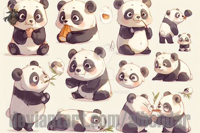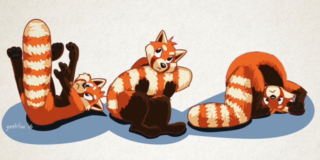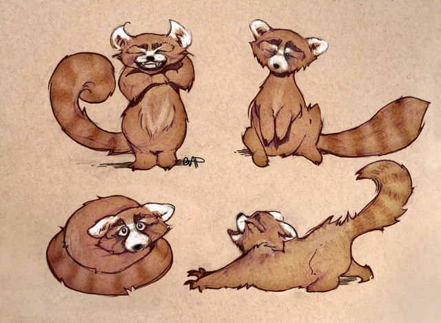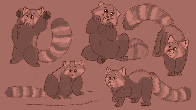 Let's continue with some red pandas.I'm trying some character designs while inspiring from photos, or inventing some poses.