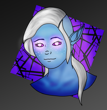 The shading on this looks pretty well, I would recommend drawing more darker shadows. I like how you drew with blue colored lineart and not just plain black. I love the background and the merman's hair.