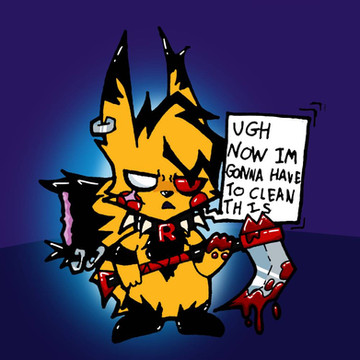 Ha ha! Awesome! This reminds me of the pikachu plushie of mine - stabbed it and gave him blood stains with a red marker - named him Zombiechu XD