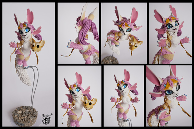 Estoy completamente de acuerdo contigo, es un personaje adorable! Y que bien ver algo personal, siempre es agradable ver a un artista hacer algo para si mismo. ^^ Y este personaje estΓ‘ muy bien, buena elecciΓ³n para hacer una escultura. Me gusta la combinacion de colores y esos ojos.