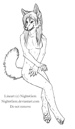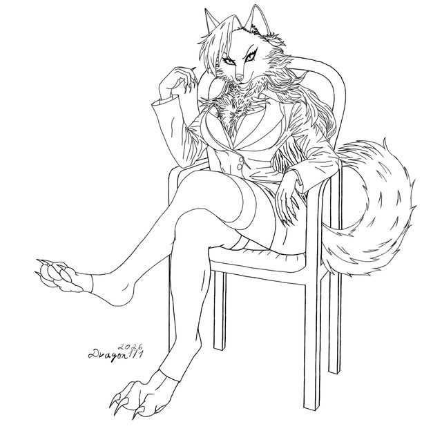 #anthro #breasts #crouches #feets #female #fur #hair #knee #tail #wolf