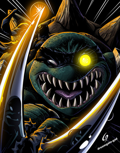 RAPH!! NO!! ALRIGHT YOU ORANGE PUNK!! THAT'S IT!! *turns into past evil form* YOUR GONNA DIE FOR HARMING HIM!!! FOR MY CHIDLHOOD! *rears and charges at KC*