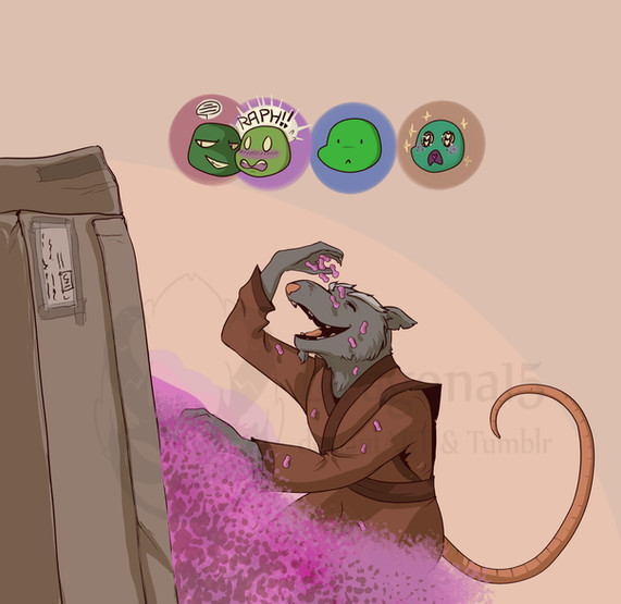 We maybe could do whatever you want in teenage mutant ninja turtles ..since Donnie loves April my character oc Sylvester she is a girl could go with her.. If u want..