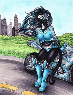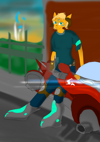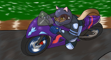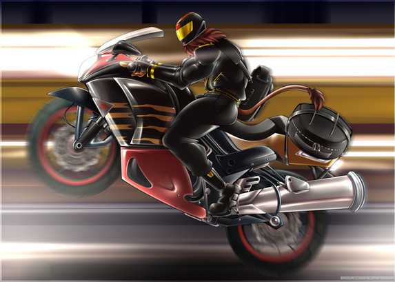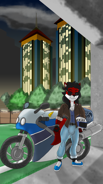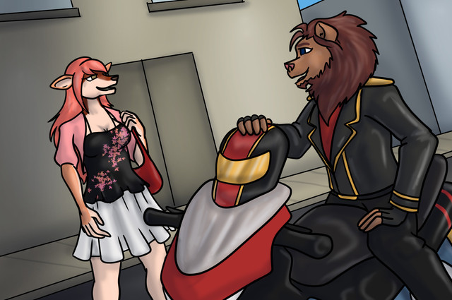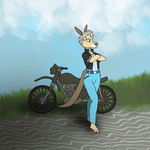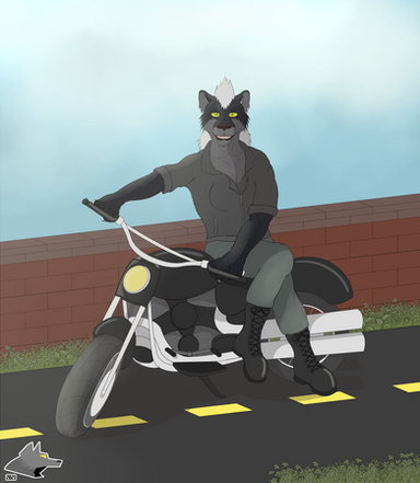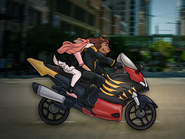 Leonidas was at a motorcycle hangout when he met a mysterious wolf. The two of them started talking about their lives and their loved ones. He learns that his name is Drake and that he is in a secret relationship with a certain snake singer. The two wants to see which motorcycle is the fastest, so they decide to have a race. Leonidas is in the lead but Drake is slowly closing in. Though a bit far, he could have swear that Drake's eyes were glowing, but it does not matter. It looks like the two are having a blast racing each other and not care who wins or loses.Art and Drake was made by