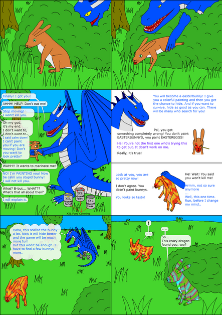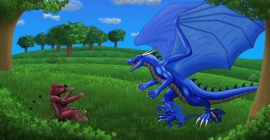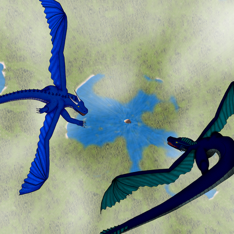 After that growed a wild fight, where they jumped over the snow and played together. The big one tried to hunt them and the youngs ever tried to avoid. Also the big dragon summoned a snowstorm, by flapping his wings. The two kids had a lot of fun fighting against it.
