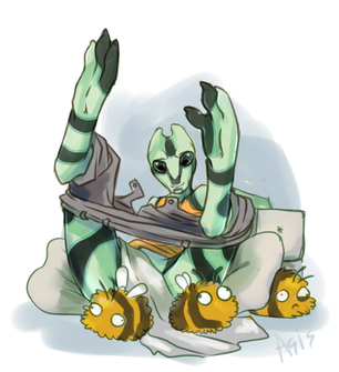 Just how I like my salarians, COVERED IN BEES! xD sorry bout that, great job on this guy, he looks sweet! <3