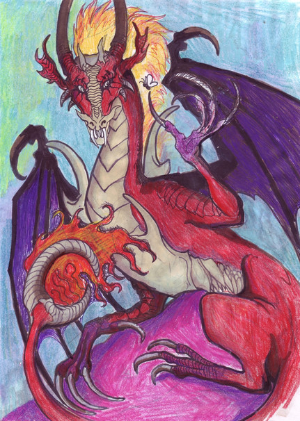 nice, this is very nice. I really like the great color work that you have done in the dragon, Also i love how the dragon hold on, on the skull