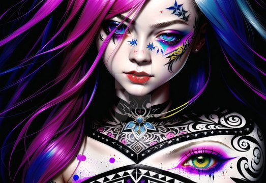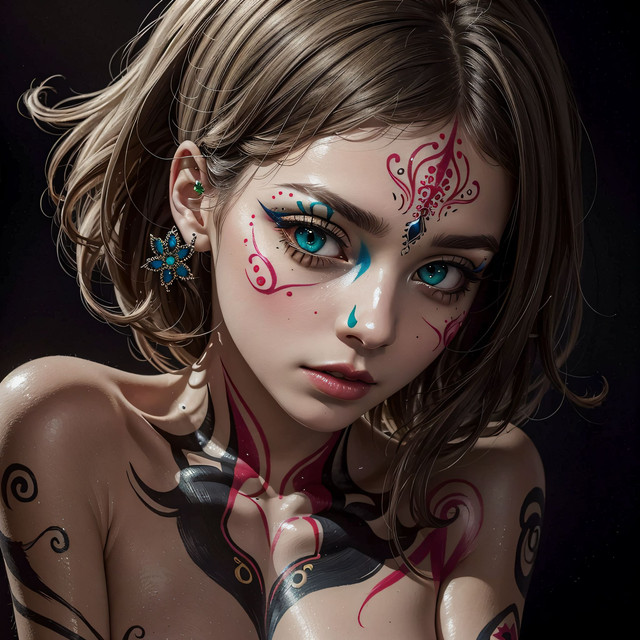 #ai #animegirl #beautifulgirl #bodypaint #facepaint #aiart #animecgigirl #bareshoulders #beautifulgirlportrait
