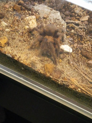Everyone, meet my new friend and first tarantula Calcifer! Only an hour after being unboxed he'd already eaten a cricket which is pretty good considering he'd been in the post for a day!He/she is a New River Rust Rump from Arizona!I'll definitely be getting more spiders in the future