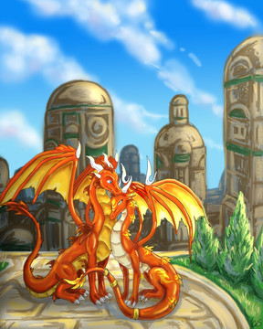 I have to admit I was terrified of this picture because of all the elements involved, especially the architecture of the dragon city below there.