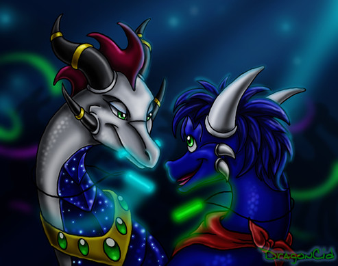 Kindle enjoys doing some glowsticking with Cyril and Volteer, and they are more than happy to dance the night away with her lol. I could imagine Volteer really liking a Rave, with all the electronic music and neon colored lights, seems just the place for an electric dragon lol.Where's Terrador?? Well, he's just not into Raves for the moment. lol.