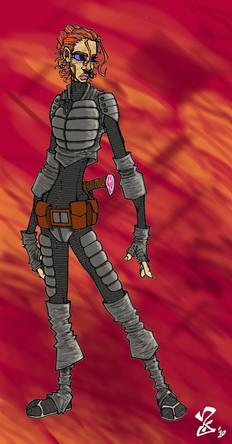 Now THIS is a sweet redesign!! The Reverse-Tiger colors work perfectly for her character, and I love how you gave her cat eyes! I think it was a good choice keeper her hair short and her feet barefooted. Seems more efficient and like a true martial artist.