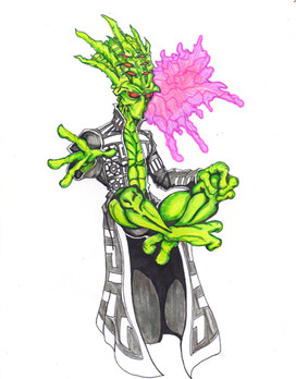 Goop is a humanoid pile of goo that can take any shape at will.Goop has an Anti-Gravity Projector that allows him to be mobile in Earth's gravity and also projects his voice.