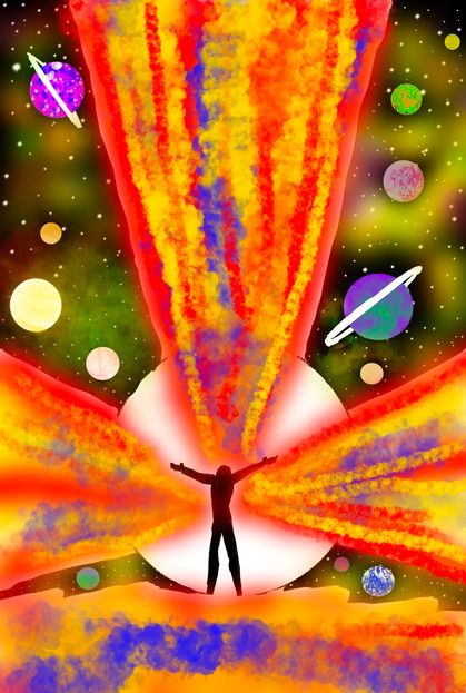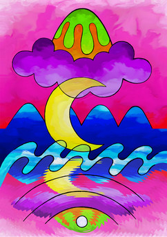 The colors vibrate and one can't tell if the moon is on fire or a mystical comet is flying by.