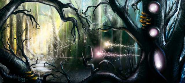 #dragon #forest #gif #loop #rainbow #swirl #tree #animation
