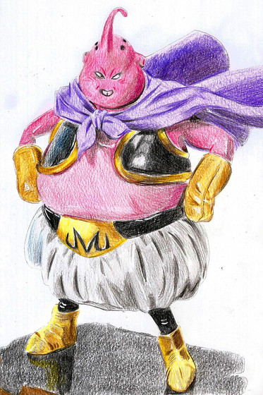 BUUUU!!!! OMG Buu is so cute! i love dbz... as u can kinda tell by my name... you say it took you ages. well i say it is worth it! the shading really draws out the life in Buu and gives a totally realistic look.