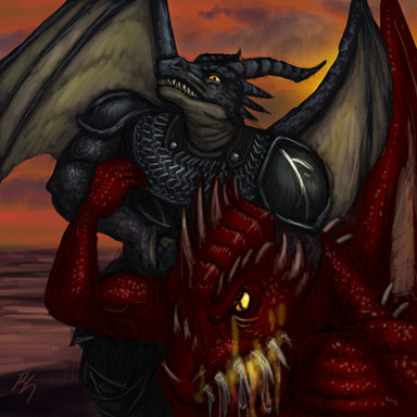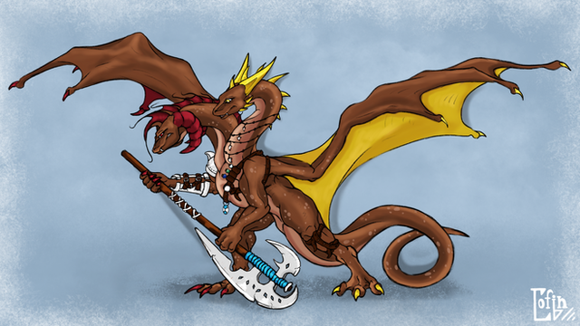 This is a anthro version of 's Scrumo dragon, two headed, but I messed up and put the red head on the wrong side, too lazy to flippy flop...So yeah..