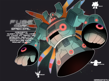 When the battle proves too tough for the rangers, they call upon the fourth member of the Bisharp Rangers, MEGAS. MEGAS springs forth from out of nowhere, and lands with an earth shaking drop. All the job normally calls for is MEGAS' mighty DynamicPunch attack. Despite being robotic and seemingly emotionless (a common misconception for his species), he watches his teammates out of protection and care.