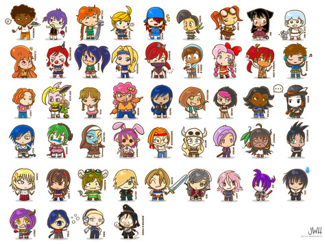 A bunch of chibi-styled drawings I've done over the year, whether it be from my streams or just as presents for friends.