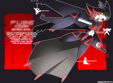 Possible Abilities: Razor Wings: Powers up moves like Brave Bird and Steel Wing, and damages physical attackers, Sand Rush, Speed Boost, Swarm, Sniper, Strong Jaw, No Gaurd, Poison Point, or Venom Fangs: All biting moves will always Poison the target. Exceptions to Venom Fangs: Fire Fang, Ice Fang, Poison Fang (will badly Poison), Thunder Fang (Fire, Ice, and Thunder Fangs have a 20% Chance of Poisoning instead of the other status condition), and Super Fang (when opponent is at Max. Health.) Item: Yanmegite. Possible Typings: Bug/Steel, Bug/Dragon, Dragon/Flying, Bug/Poison, or Poison/Flying.