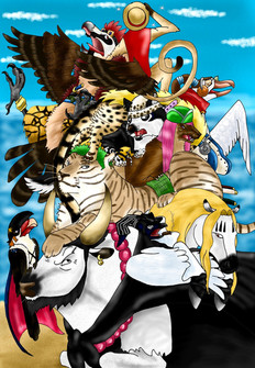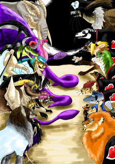 Very nice lineart by your sister here-the poses look fantastic and the top down perspective is really awesome. And your coloration is very awesome as well-I really like the texturing on the dragons and the little details in it.