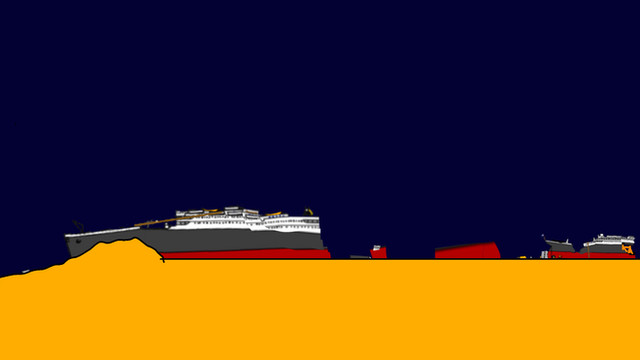It's the ghost of the RMS DragonScript.It's almost finished. I'll explain what's with the stuff on the beach later.