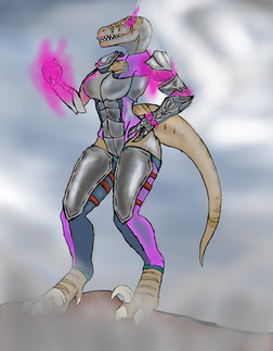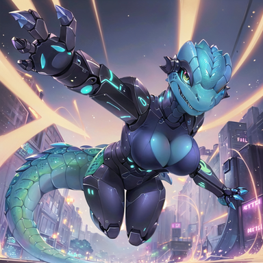 #abs #breasts #claws #clothed #drool #fangs #female #glow #gullet #mechanical #muscles #pounce #rags #raptor #ready #robot #scales #solo #spikes #synth #synthetic #throat #toned #tongue #open_mouth #flames_no_feathers