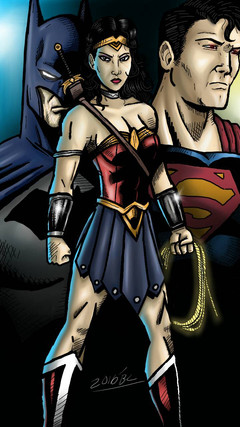 Wonder Woman, Batman and Superman based off the Michael Turner cover in the graphic novel Superman/Batman/Supergirl. This was my first attempt at both Wonder Woman and Superman, the Batman I used is based off the Jim Lee version in Hush. The first of several 'Trinity' collections to come.