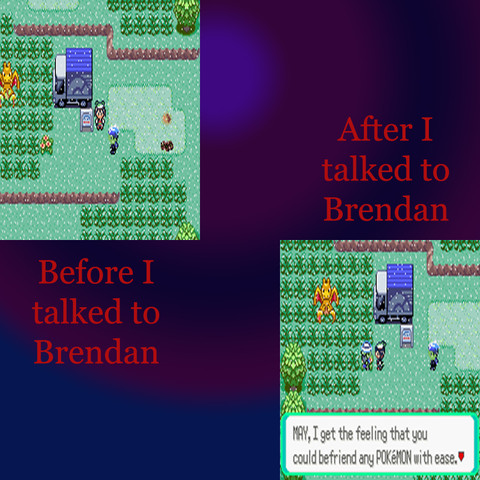 Have you ever wondered what happens if you go to a pokemon center without pokemon? Well here is the answer. A big glitch fallowed the innability to move. The game still runs but, you are frozen.I made this possible with a program called AdvancedMap.