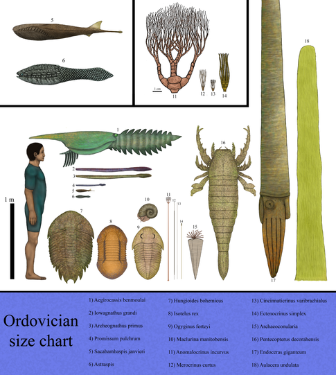 Arthropods were going towards a major wave of diversification during this age either from land as well from water, the subsequent land colonization established pretty well many of the current orders that would dominate and survive on land for the next 400 million years, as well in the ocean with the rise of jawed vertebrates and the subsequent major mass extinction they reorganized their diversity, although than rather dim their number it just brought them new opportunities to improve and adapt.