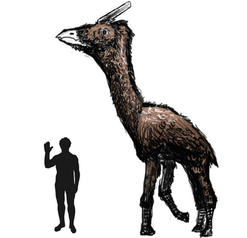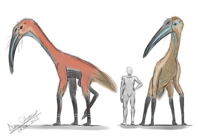 The Pillarneck (Maxicollus phytus) is a weird browser herbivore descendant of some flightless azhdarchid pterosaurs that inhabits the forests of Indonesian islands during the Holocene in an alternative world where mass extinctions didn't happen as on our world, letting pterosaurs Azdarchids live and diversify in many ways. It is characterized by its long neck that comprises almost the whole body of the animal, reaching heights of up to almost 4 meters, with small but thick legs alongside robust neck vertebra help it stand.They are mostly slow and get most of the moisture and food from the plants they eat, although it is capable of lowering its neck like a giraffe to drink water, with its anatomy it is a bit difficult and is not able to do it unless urgently needs hydration.