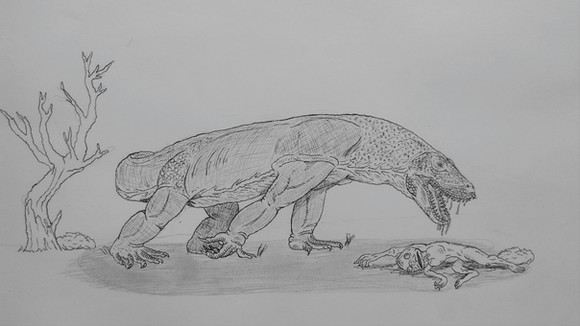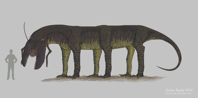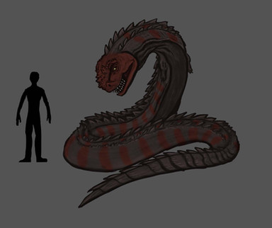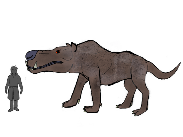 These giant two-legged creatures are recognized as unique predators that are only found on this particular island, characterized by their strange morphology which does not coincide with another living tetrapod, being able to build burrows and remain underground for good amounts of time and only get outside of its burrows to get food, many known specimens have a length of about 5 to 7 meters, however, they are known thanks to the remains that these monsters can grow up to 10 meters long.