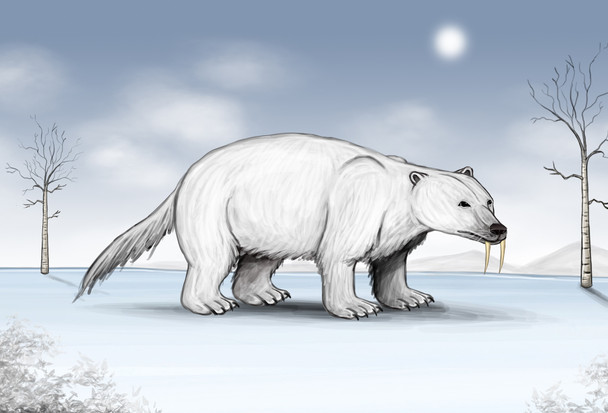 Saber-toothed Polar Bear??? Oh my... And what's he eating?