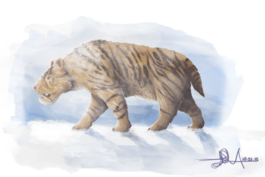The scene here shows the fierce and lethal Snowstalker, enjoying its prey, a young shagrat. The remarkable change in the design in comparison to the original is the less canine jaw, being short and robust, with less prominent saber teeth, also I added up a bit more of fat, a little more erect posture like a bear and with a shorter tail.