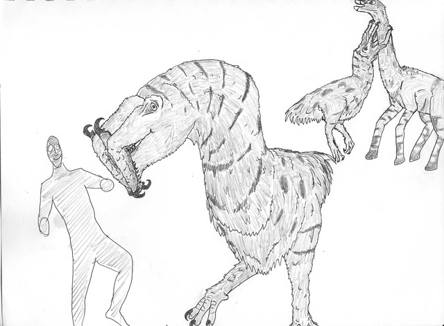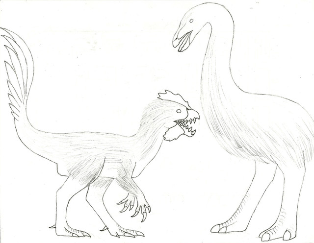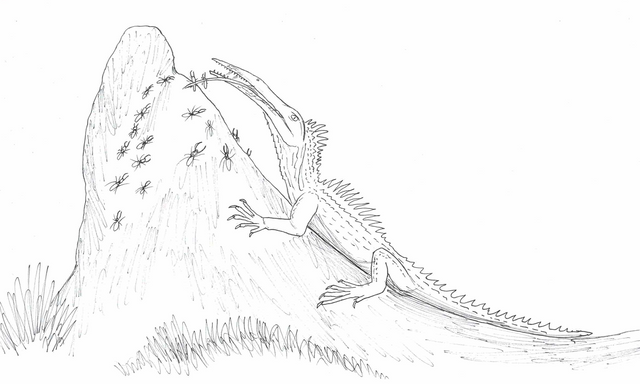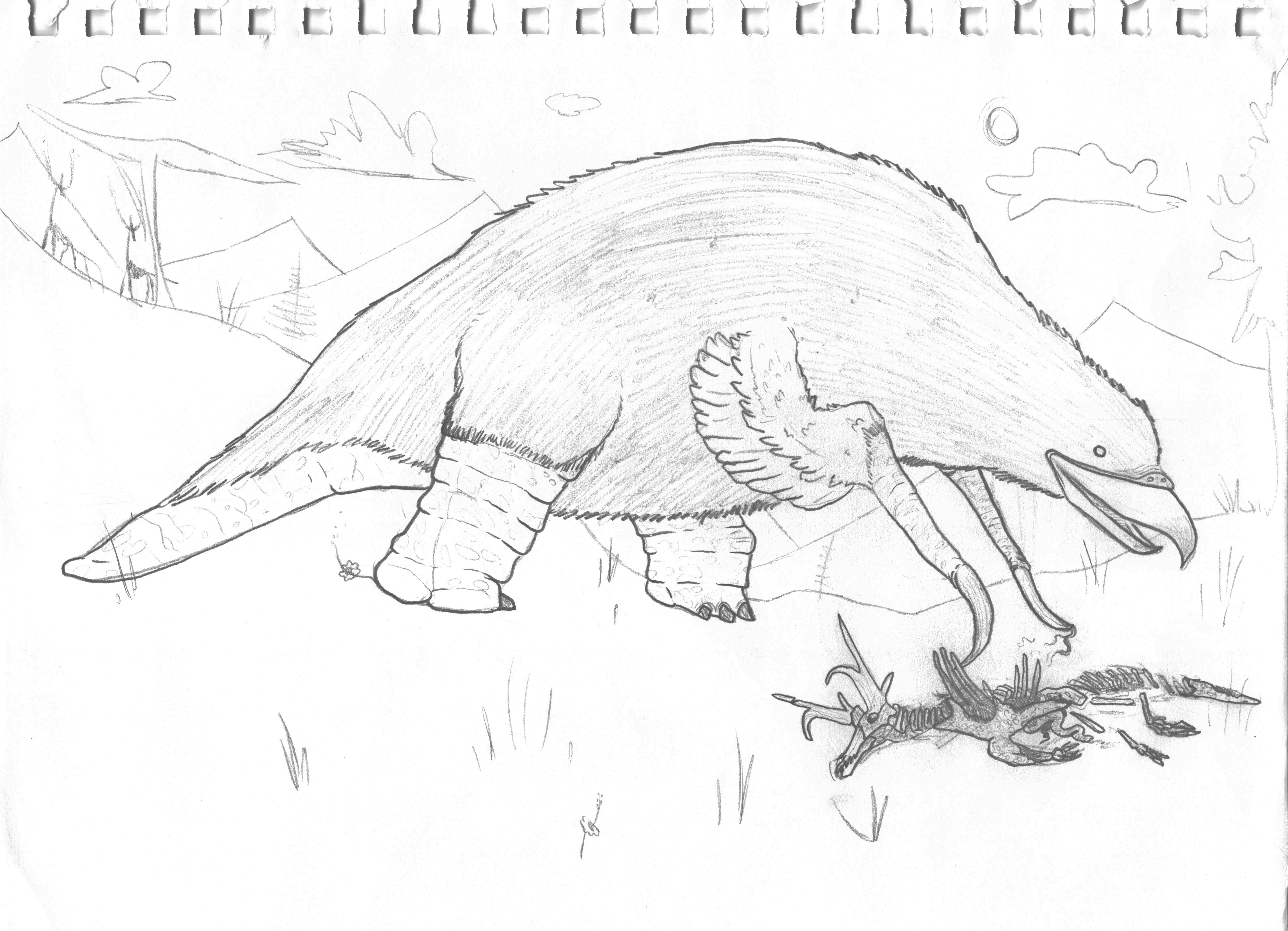 The Apterodactils are a diverse suborder of terrestrial pterosaurs that arose during the Cretaceous, after a mass extinction at the beginning of this period, from tree species that advanced to earth 70 million years ago. After the Cretaceous/Paleogene mass extincion event, they came to develop a huge diversity without competition from other large animals, becoming one of the dominant groups in the early Cenozoic megafauna.One such example is disclosed in the guzzling, one of the largest "Terror pterosaurs" than ever lived, with about 3 meters long, has captured a small quadruped ornitopod. They lived in North Africa 55 million years ago.