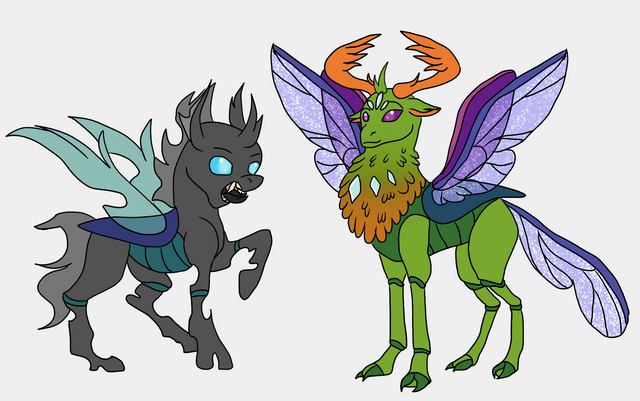 Backstory: Once Chaos was a human maiden; then she met Discord in a dream, the two had great fun together. She was happy to let go of her inhibitions and run wild, and Discord was happy to have someone to willingly share in his idea of “fun”. When it was time for her to awaken from her dreamy state Discord marked her with a small piece of his power so that he could find her again. The girl thanked him, and woke up. Thinking endlessly about the draconequus, and her time with him she decided to draw up a draconequus alter ego of herself. The next night she thought about how to propose her idea, and met Discord again in her dreams. She expressed her thoughts of increasing their fun with her being a draconequus as well: Discord delighted in the prospect and bestowed her some of his power. With her drawing embedded in her mind she forged a new form for herself, and gave herself a new name to match her new shape: Chaos. The rest of her time with Discord that night was spent getting the hang of her new powers. It was surprisingly easy, after all: rules of reality and laws of logic didn’t apply to a draconequus.