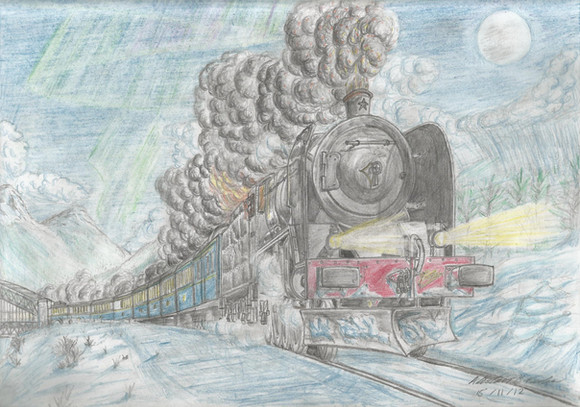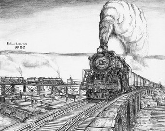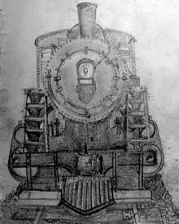 Wonderful drawing, nice work. It really does feel like the engine is coming right at us.