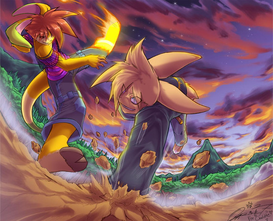 Great job with the poses. It's very...actiony. XD Nice job with the shading too, especially on the pants.