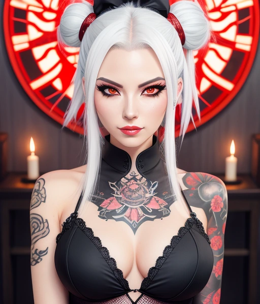 #4k #anime #cleavage #face #female #fishnet #gothic #hair #high #key #kimono #ponytail #portrait #quality #setting #stockings #tattoos #visual