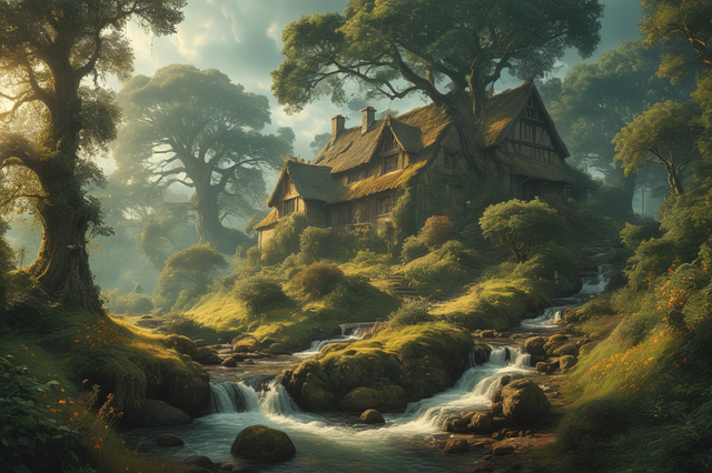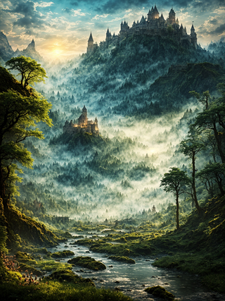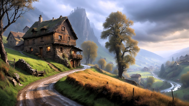 #4k #8k #aliasing #ambient #anti #beautifully #cinematic #detailed #foggy #forest #high #illustration #landscape #landscapes #lighting #masterpiece #realistic #resolution #ruins #shadows #trees #ultra #very #village #waterfall